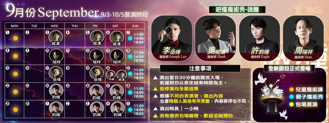 每位演出魔術師皆風格迥異,擅長用敘事包裝魔術,讓觀眾沉浸在不同的想像與情緒中。